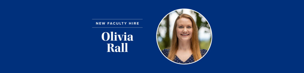 Provost Scott Pace commented on Rall’s recent appointment, stating, “As an alum of Judson College, Olivia Rall is a living testimony of the life-changing mission of Southeastern. As a faculty member, her expertise in such a critical field, combined with her strong biblical convictions and passion for discipling students, will provide a trusted voice to help students give their lives for the cause of Christ in the church, among the nations, and in every aspect of society.”